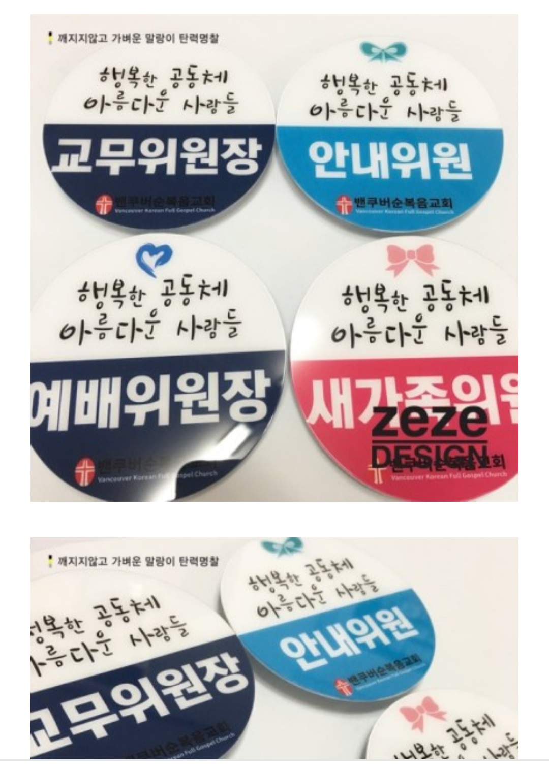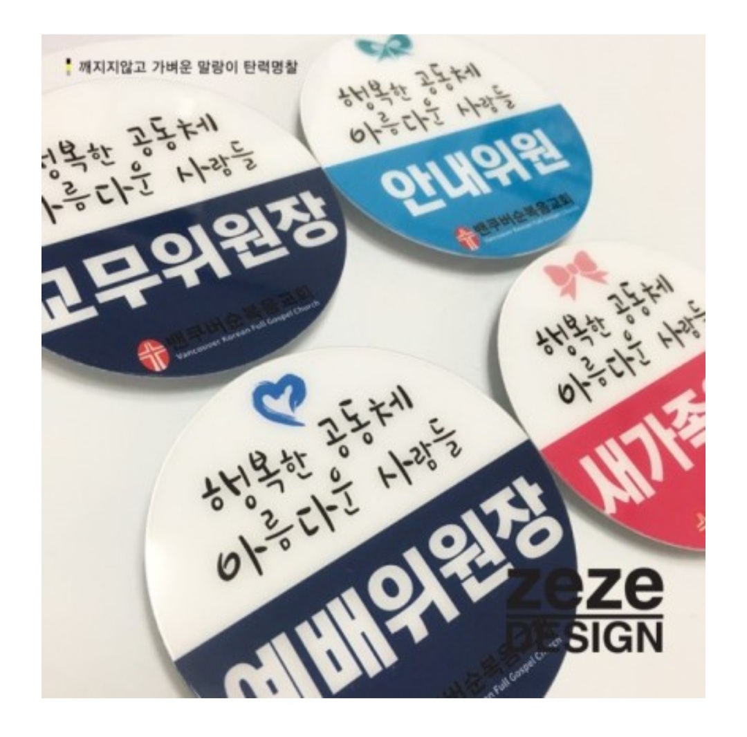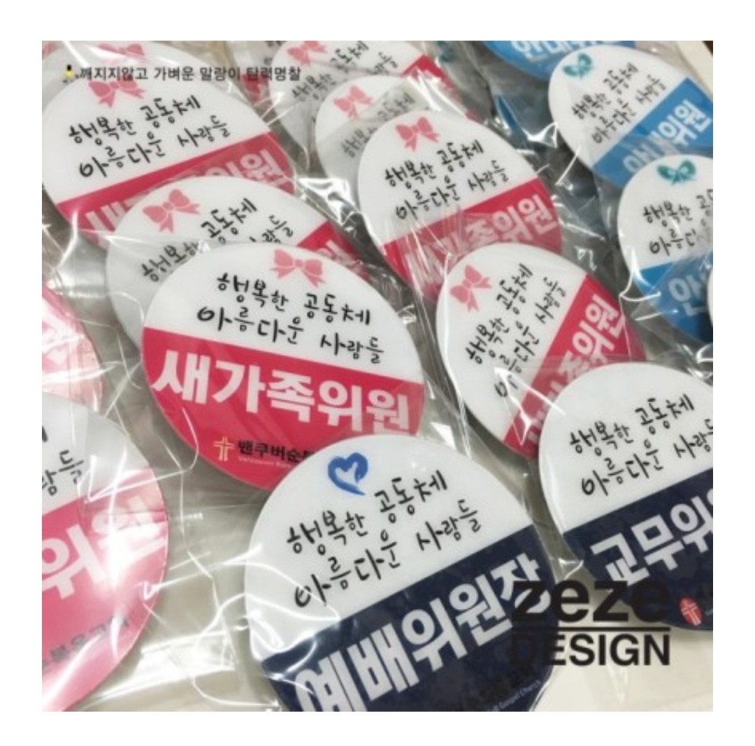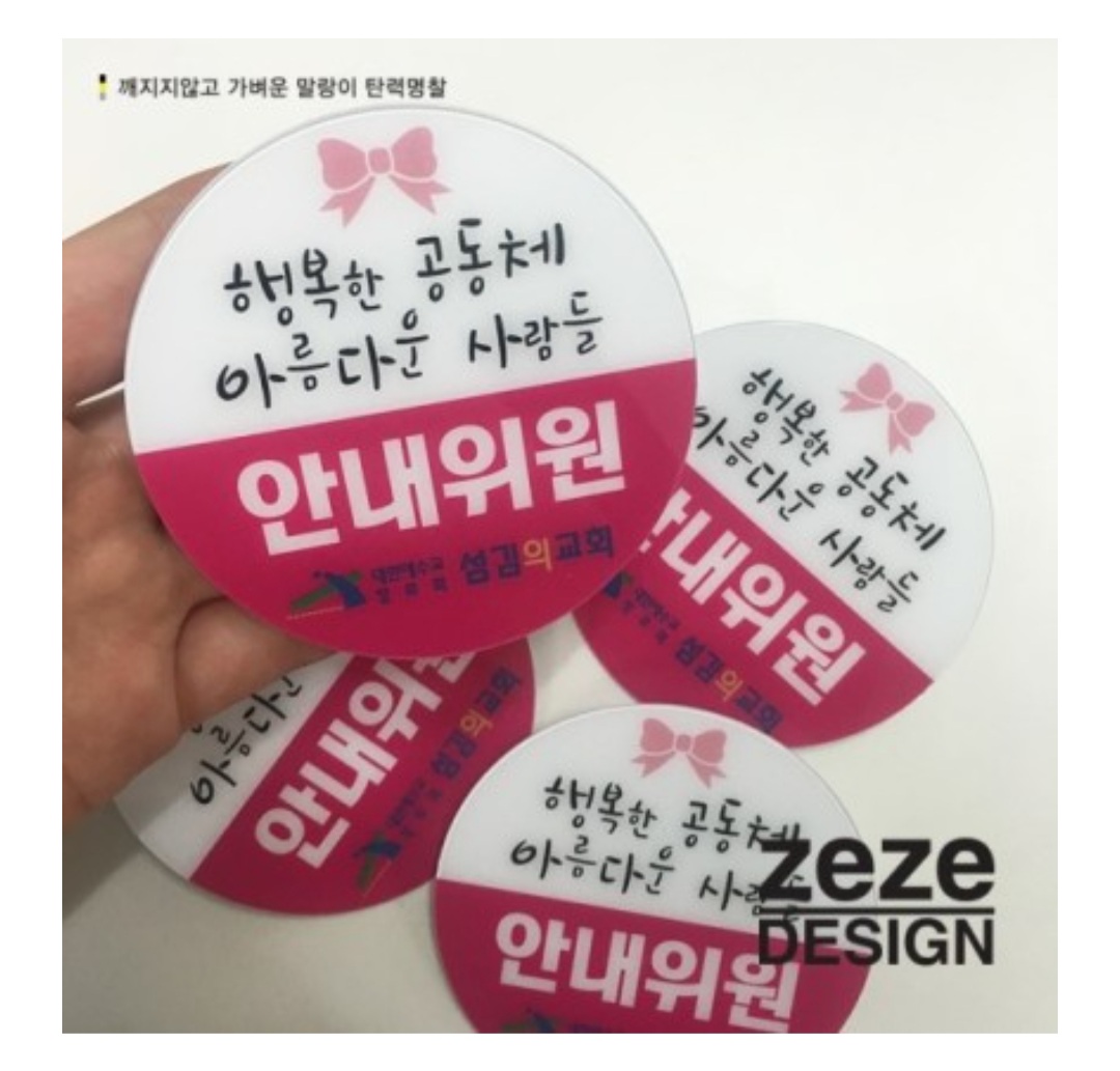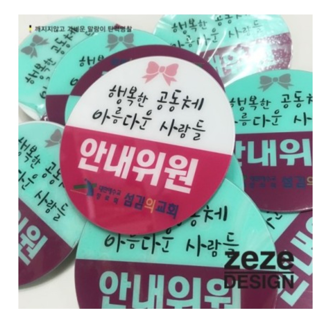 -[둥그라미,원형명찰]인천 섬김의교회 교회 안내위원,안내자명찰 교회위원회뱃지,명찰...